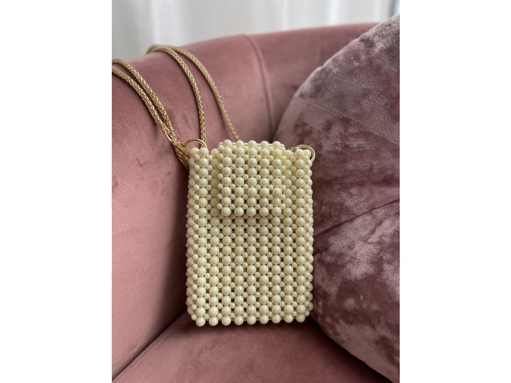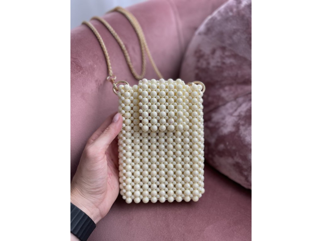 Ručně vyrobená korálková kabelka určená pro mobilní telefon.